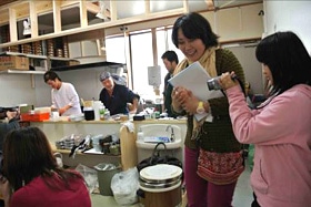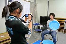 仮設住宅の集会室では、ボランティアによる足湯が開催されていました。運営しているのは、宮城県出身の大学生・大友将矢さんが代表を務めるボランティアチームのメンバーです。大友さんは法政大学の学生ですが、現在は休学し復興支援活動に専念しているそうです。子どものひとりを津波で亡くしたという仮設暮らしの男性は、「こうしてボランティアの人が支援に訪れてくれることに元気をもらっている」と話してくださいました。