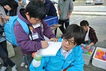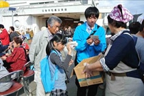 新潟県十日町市から来たボランティアのおばさんが、十日市に昔から伝わる「白豪のお守り」を被災者に配っていました |