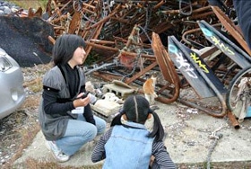 子どもたちが夢中になったのは、瓦礫の中に暮らす子猫です。