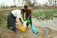 | ユニセフが配布した浄水剤を使う被災地の人々 |