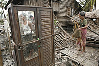 | ヤンゴン南部の町で、家財道具を確認している家族。 |