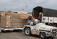 | ヤンゴンに到着したユニセフの支援物資。 |