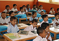 | 真新しい校舎と校庭を持つシンク小学校には、サイクロンで校舎が倒壊する以前より、多くの子どもたちが通っています。 |