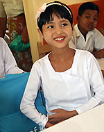 | アイェ・ナンダールちゃん(11歳)も、新しい学校は快適で、授業も楽しいと話します。 |