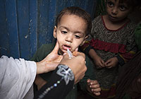 パキスタンは、現在、世界でわずか4カ国になった、ポリオの流行が認められている国のひとつです。2008年には117件のポリオの症例が認められ、2007年にはそのほぼ4倍の症例が報告されています。ユニセフは、WHO、国際ロータリークラブ、米国疾病予防管理センターとともに5歳未満の子どもたちを対象にした予防接種キャンペーン=世界ポリオ根絶イニシアティブを展開し、この予防可能な疾患を根絶するべく活動しています。