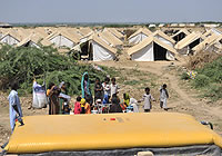シャジアさん(22歳)は、1ヵ月以上前、パキスタン南部シンド州近郊のタッタに設置された避難キャンプに、夫と5人の子どもたちと一緒に避難してきました。シャジアさん一家は、現在、ユニセフから飲料水を提供されているシンド州の15万3000人以上の被災者のうちの一家族です。タッタでは、ユニセフの支援で機能している浄水場で、清潔な飲料水を得ることができます。