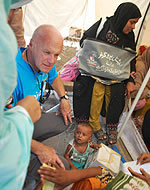 | 8月、シンド州の避難キャンプを訪れたユニセフ・南アジア事務所のダニエル・トゥール代表。 |