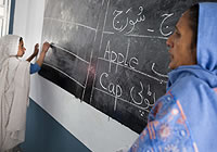| シーン・パタイ村の小学校長を務め、英語を教えるムサラート・アフザルさん(写真右)。 |