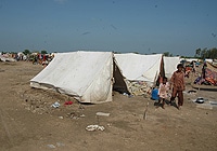 | シンド州を襲った洪水で、家を失った347世帯が避難生活を送るキャンプ。 |