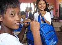 | © UNICEF Philippines/2006/Yap 10月の台風被害の際には、ユニセフから学用品が支援されました。ソルソゴン州ラ・ロサ小学校にて。 |