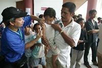 | 2004年12月、スマトラ沖で発生した地震の支援活動の一環として実施した予防接種キャンペーンの様子。 |