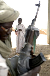 | スーダン解放軍の兵士を見つめる子ども(北ダルフール・エルファシ) |