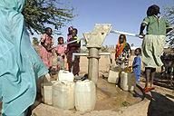 | ユニセフが支援した井戸から水を汲む人々(西ダルフール・エル・ジェナイナ郊外) |