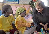 昨年11月、ベネマン事務局長のスーダン初訪問時の光景。当時、北ダルフール・アブ・シューク避難民キャンプのユニセフ支援の子どもにやさしいセンターにて。 |