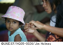 バンダアチェ近郊では、ユニセフ支援の2つの学校が408人の生徒を迎えてすでに再開しました。現場で活動するユニセフの職員によると、学校の一刻も早い再開を依頼したのは生徒の親たちでした。学校の再開は、人生の再スタートの力強いサインですとユニセフ事務局長は話しています。