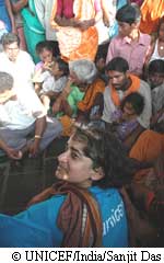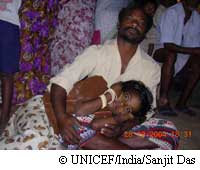 30日(現地時間)現在、ユニセフが把握する限り、インド南部の8つの被災地域に約380カ所の避難所が開設され、うち、タミール・ナドゥ、ケララ、ポンディチェリーの避難キャンプでは、およそ40万人が避難生活を送っています。余震が続き、更なる津波被害の恐れがあるため、津波被害がそれほど深刻ではなかった地域でも、夜間を避難所で過ごす人々が少なくありません。現状では、タミール・ナドゥ州の小学校の新学期の開始時期が、当初予定よりもずれ込むことが予想されます。