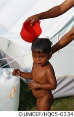 被災地域で疾病の蔓延を防ぐための緊急で最優先の課題は、十分な水と衛生施設を確保することです。水と衛生分野の支援の成功は、水に起因する深刻な疾病の流行が被災地域のどこでも報告されていないことに表れています。ユニセフが主導したのは以下の事業です: