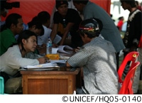 昨年12月26日の津波当日から、ユニセフは津波の被害から子どもたちを守るため、コミュニティ、各国政府、国連機関やNGOなどと綿密な連携をとって活動しています。活動の対象は、感染症や栄養不良の予防、子どもたちが学校に通えるようにすること、被災した人が保健ケアを受けられるようにすること、トラウマの治療、安全な環境の整備などです。