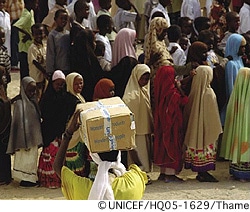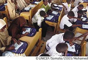 津波によって、ソマリア北東部沿岸に住む約300人が命を落としました。海岸線の最東部にあるハフンという村は、最も大きな被害を受け、5千人が住む場所を失いました。殆どの家屋が破壊され、水と衛生システムもダメージを受け、食糧不足も続きました。しかし、ユニセフとそのパートナーによる緊急支援は数千万の人々に届けられ、特に下痢性疾患の発生を防ぐことができ、また子どもたちの就学率を急速に高めることに成功しました。