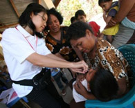 2007年、マラリアから身を守るための殺虫処理を施した蚊帳が100万張以上配布され、津波以降配布された数は合計150万張に上りました。蚊帳を使用する5歳以下の子どもの数は、2005年の66%から85%に増加し、実際にマラリア感染者の減少が報告されています。