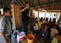 ユニセフの水プロジェクトは、アチェで避難生活を続けている人々と家庭に対してサービス提供を続けており、現在約18万2,000人が改善された給水設備を使用しています。2008年には36万5,000人が支援対象となります。現在、農村部の水と衛生の促進プロジェクトにより、157コミュニティの2万人、207校5万人が支援を受けています。