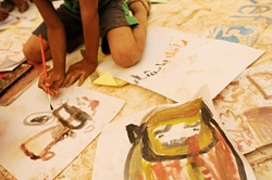| ユニセフが支援している子どもに優しい空間で遊ぶ子ども。 |
