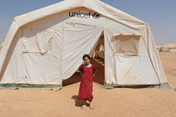 ユニセフは、国内避難民が退避している場所(学校やモスク、公共施設)においては、「子どもにやさしい空間」と移動型の心理社会的支援チームを提供しています。ダマスカスとダマスカスの農村地域においては、5000人以上の子どもたちがこうした支援を受けることになります。アレッポとアレッポの農村地域では、約1000人の子どもたちに、ユニセフが支援をしている22の移動型チームが社会心理的サポートを行いました。