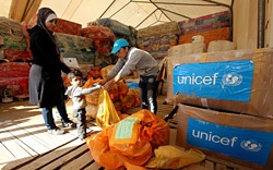 つい先週の土曜日も、パートナー団体と協力して、ユニセフは、シリア北西部イドリブ州のカラメーに逃れた6,000人の避難民に、第一便となる救援物資を届けました。