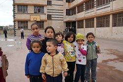 ホムスの比較的落ち着いている地域に設置されている避難所は、生活を失った悲しみに溢れていました。そこには、所持品も尊厳のある生活も失った家族がいました。多くの家族が、避難している公共の建物や学校の一部屋を、他の家族と共有して利用しなければなりません。それぞれの家族の生活スペースは、毛布や衣類をぶら下げて区切ってあるだけのことが多く、またお湯やシャワーといった基本的なサービスも整っていない状況です。