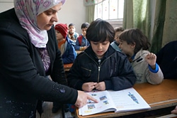 武力紛争による破壊と荒廃の現状を確認するのに、何も遠くまで足を延ばす必要はありません。「ドン」という、とどろくような砲撃音は、ここでは毎日の日課のような出来事なのです。ホムスの広い範囲で、何十万人もの人々が安全な場所を求め、自宅からの避難を余儀なくされました。