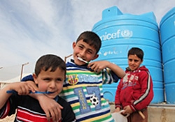 | ザータリ難民キャンプの子どもたち。ユニセフは、新たに避難してくる人々のために、国際社会に、追加の資金援助を求めている。 |