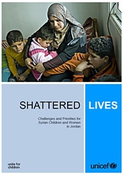 このたび、ユニセフ・ヨルダン事務所はレポート『SHATTERED LIVES(仮訳:「困窮を極める生活」、英文全43ページ)』を発表、難民キャンプとヨルダン地域社会に身を寄せる女性や子どもたちを取り巻く状況と問題を報告しました。命からがら逃れてくるシリアの人々は一晩で500人以上。国境を閉鎖することなく受け入れてきたヨルダンですが、その受け入れ能力は限界を迎えています。そして、必死に逃れてきた避難先で、子どもたちや女性は、家庭およびキャンプでの暴力、武装集団への勧誘、早期婚、児童労働などの問題に直面しています。本レポートは、優先的に取り組む分野として、子どもや女性の保護、教育、水と衛生などを掲げています。