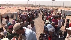 | 支援を待つ人々の列。増え続けるニーズに応えるべく、ユニセフは史上最大規模の支援を国際社会に要請。 |