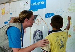 最も多いのは、家でできる仕事もなく、生活が困窮していることから、国外へ送り出され、仕事をし、収入を送金することを期待されているケースです。また、水や仮住まいを求めて避難する子どもたちもいます。ユニセフは、こうした子どもたちを家族のもとへ帰れるよう、子どもたちを保護しています。家族が見つかるまでの間、安全な生活空間、医療ケア、心のケア、教育などの支援を行っています。