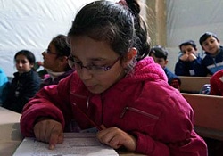 | ホムスの避難所で補修授業を受ける避難民の子どもたち。この補習授業は、紛争によって中断された学習を子どもたちが取り戻せるよう、ユニセフが支援しています。 |