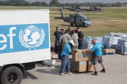 | ユニセフのトラックに積み込まれる支援物資(写真はイメージです) |