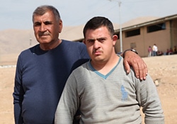 | イラク北部のアルバート難民キャンプに身を寄せるスリマンさん(左)と、ダウン症の息子モハメッド (右) |