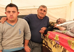 スリマンさんの長男ユーセフさんは、誕生時から体が麻痺しています。次男のモハメッドさんはダウン症、三男のヤセルさんは、腰を痛め、歩くのが困難です。