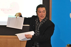 | 「激戦地」と呼ばれるシリア・アレッポの様子を語る後藤さん。 |