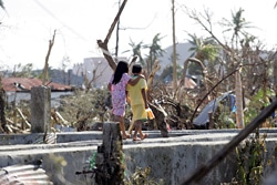 | レイテ島、タクロバンで撮影された1枚。台風の被害を逃れることができた子どもたちも、これからを生きるために支援を必要としています。 |