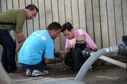 - 『ウォーターブラッダー』と呼ばれる巨大な水枕のような飲料水簡易貯水タンク3基を、タクロバンに設置。1日2万5,000リットル、8,000人を超える被災者に安全で清潔な水を供給。