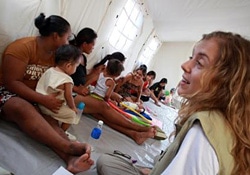 | タクロバンにある「親子にやさしいテント」では、ほっとする空間を提供しています。「ここにいるすべての母親は、彼女たちの人生における大切な人々を亡くしています。しかし、その出来事について心の整理をする時間がありませんでした」と語る、パートナー団体の心理学者カリヨさん。 |