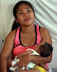 クリスティーナさんは、娘のキャサリンちゃんを腕に抱いています。キャサリンちゃんは、台風30号が去って間もない、11月19日に誕生しました。