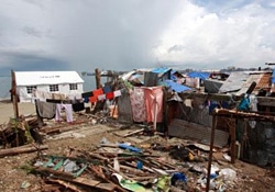 | (後方左)タクロバンにある4つの“親子にやさしいテント“のうちの一つ。 |