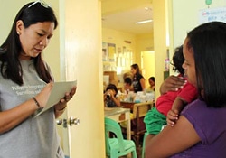 生後7カ月のデマー・ジョンくんが、フィリピン中央部の町エスタンシアにある地域の保健センターに連れられてきました。母親のクラリスさん(23歳)は「この子の咳が止まりません。5日間ずっとこの調子です。だから、ここに相談しにきました」と話します。