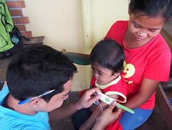 | 栄養状態のチェックを受ける子ども(タクロバン) |