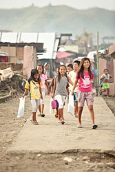 | 笑顔で小学校に通う子どもたち(レイテ島) |