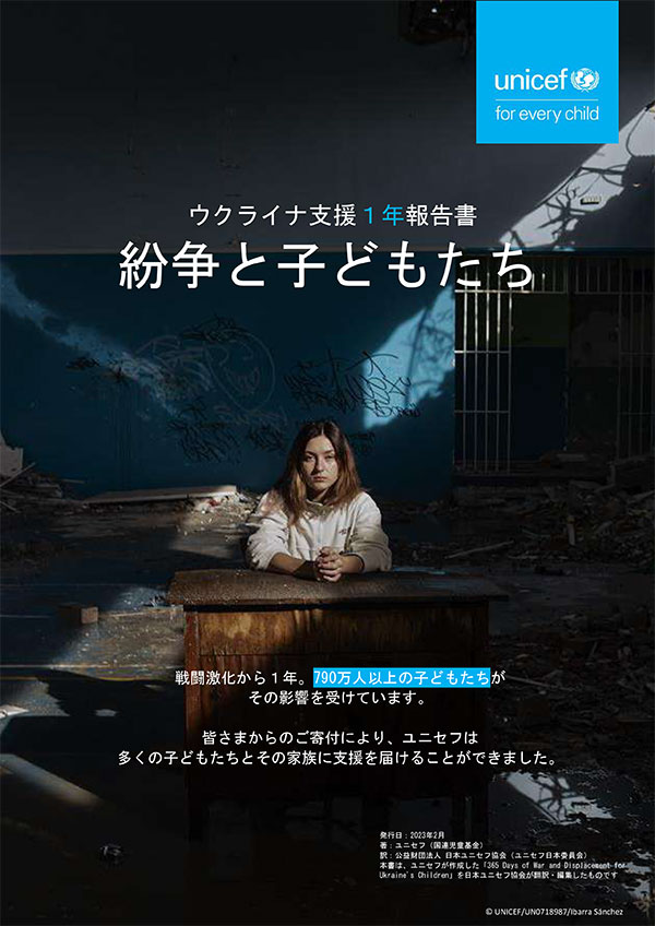 メイン:© UNICEF/UNI491254/Filippov、ウクライナの今:©UNICEF/UN0726049/Ibarra Sánchez ©UNICEF/UNI608726/Filippov © UNICEF/UNI478866/Filippov、支援ハイライト:© UNICEF/UN0760539/Ovcharyshyn ©UNICEF/UNI429298/Filippov © UNICEF/UNI551656/Szalontai、2025年の活動計画:©UNICEF/UNI404148/Filippov ©UNICEF/UNI601118/Vashkiv ©UNICEF/UNI472351/Klochko ©UNICEF/UN0780516/Unknown © UNICEF/UNI575323/Filippov ©UNICEF/UN0753153/Hudak、支援例:©UNICEF/UN0201059/Krepkih © UNICEF/UNI178513/Blair ©UNICEF/UN0599344/Nicodim ©UNICEF/UN0663676/Pashkina ©UNICEF/UNI357425/Filippov