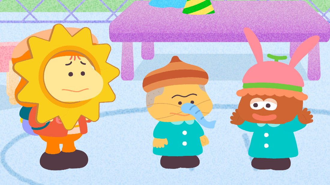 - アニメでは、みーが自分の帽子に対する愛着と意見を友だちにプレゼンしています。子どもたちが意見を表すためには、「意見を聞いてもらえる」と感じられる環境があることが大切です。茶化したり馬鹿にしたりせず、意見の違いを伝え合うことは、自分と他者を知るきっかけになります。相手と自分の感覚が違うことを共有することで、親しい関係性が生まれることもあります。