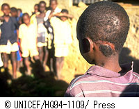 | 頭のうしろからナタで傷つけられた子ども。ルワンダの子どもたちは、今もなお苦しんでいます。 |